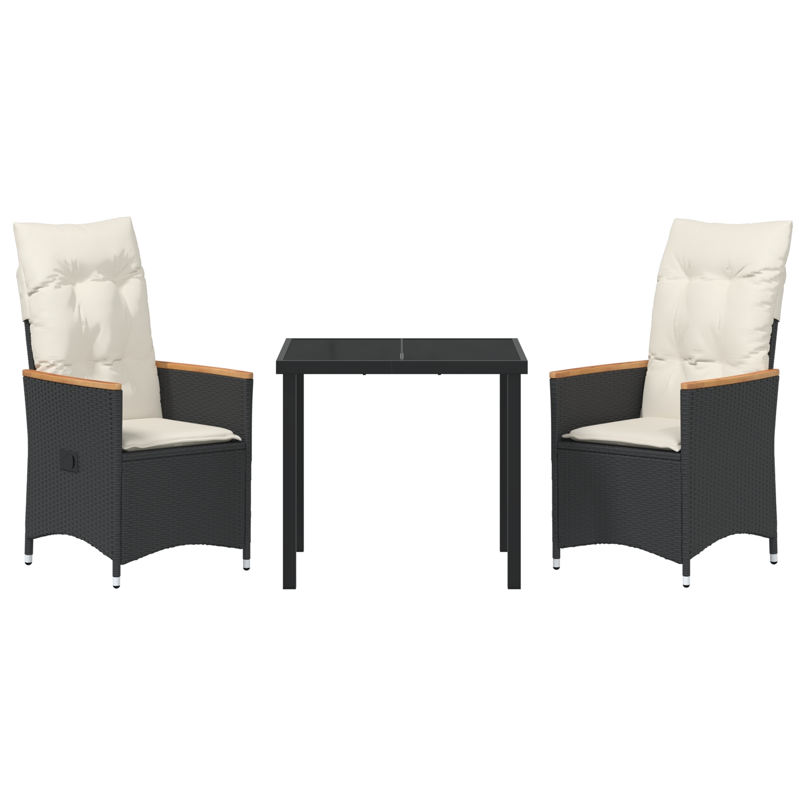Set de masă pentru grădină cu pernă 3 pcs Negru Rattan poli
