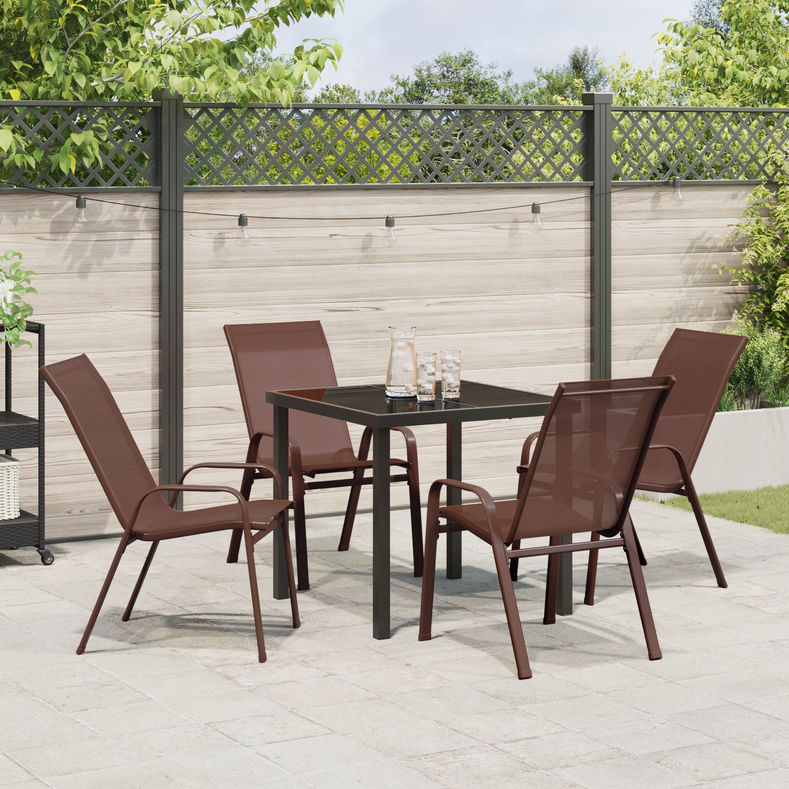 Set de masă pentru grădină 5 pcs Maro Textilene și oțel