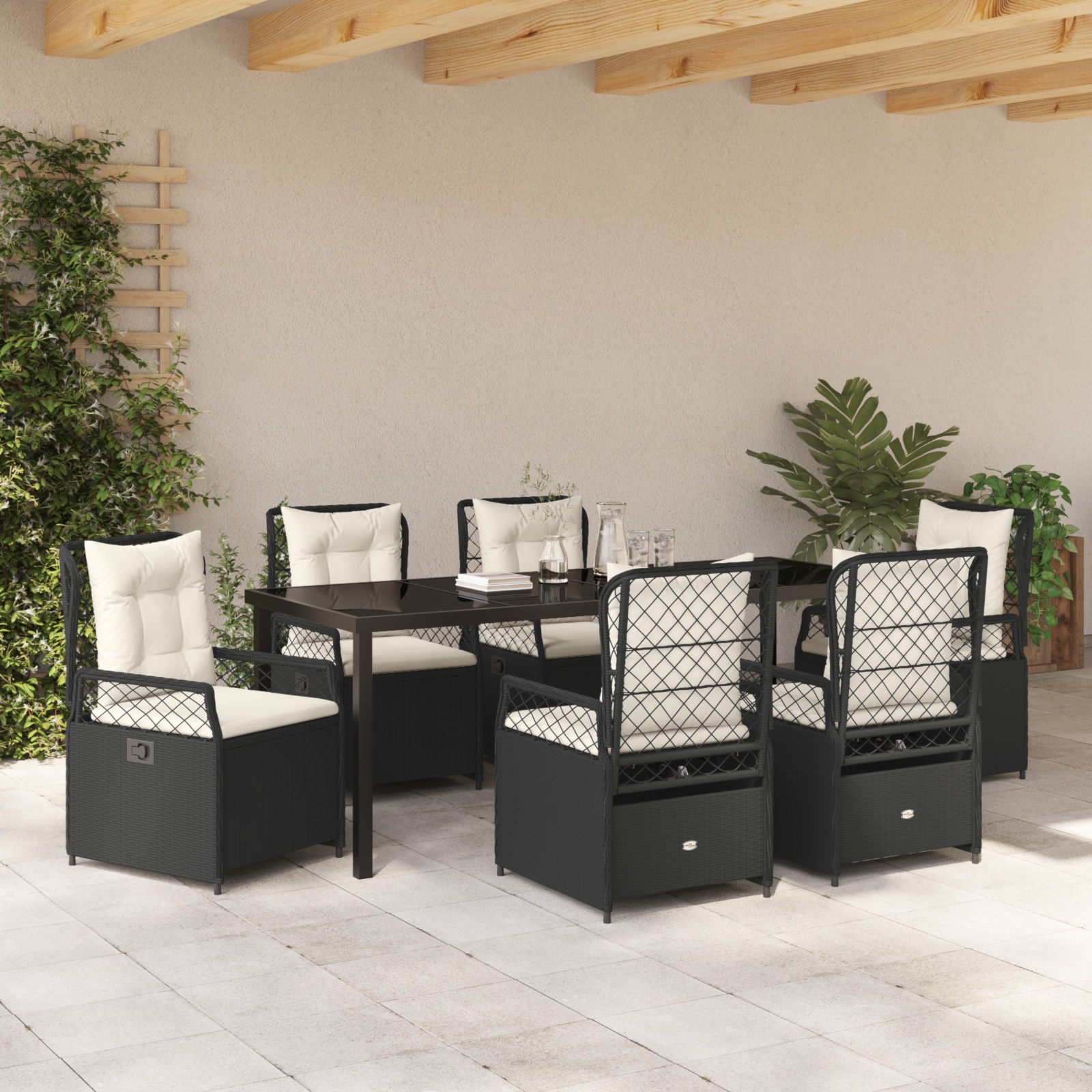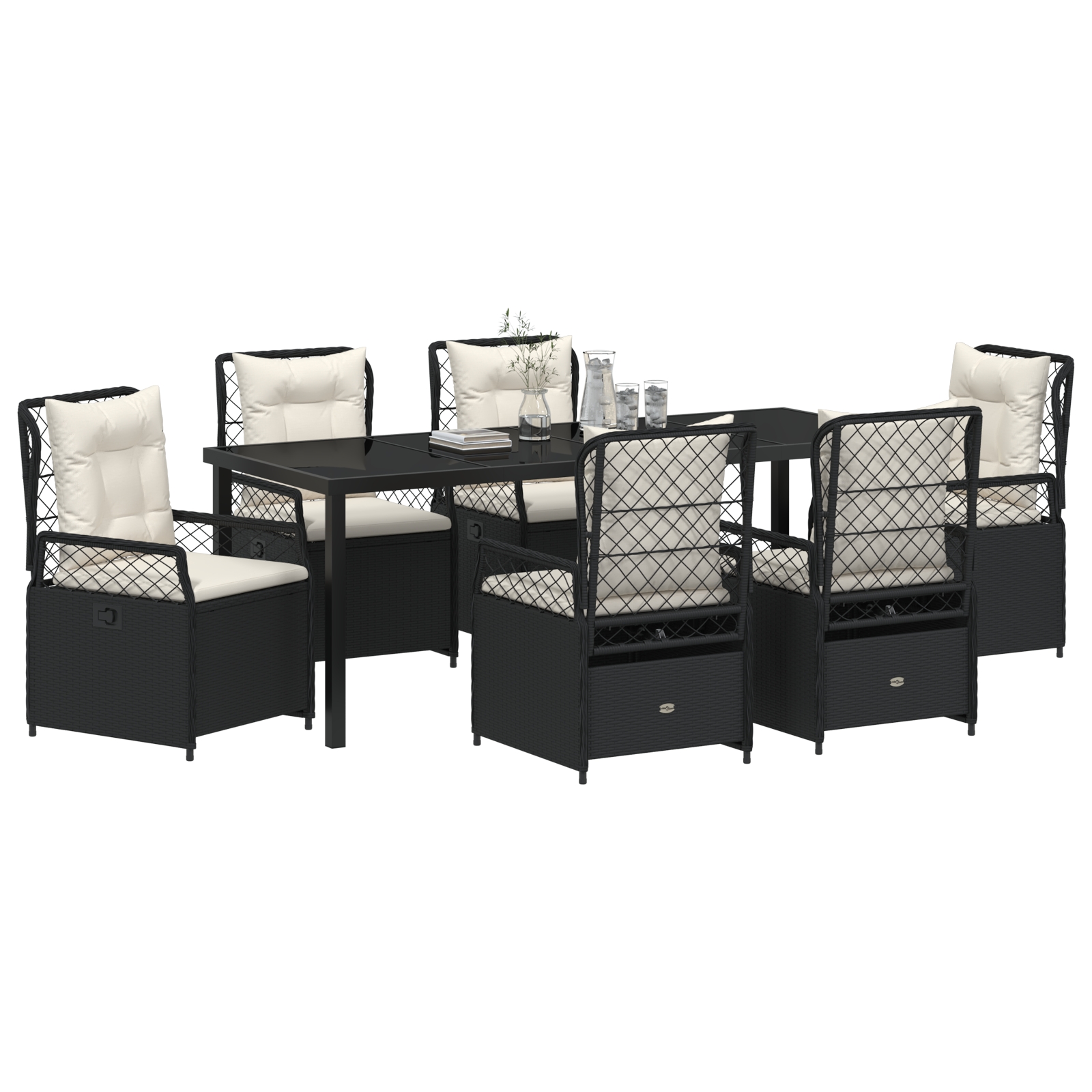 Set de mese pentru grădină 7 Piese Negru Poliratan