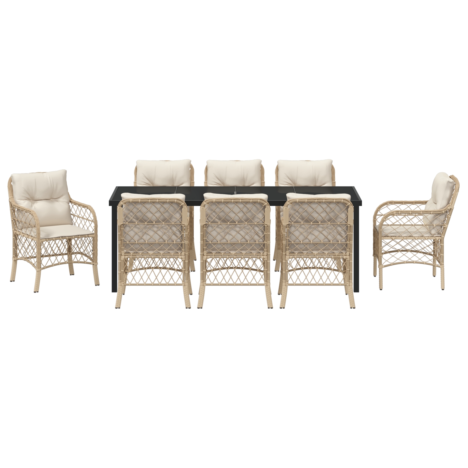 Set de Mese pentru Grădină cu 9 Piese cu Perne Bej Poliratan