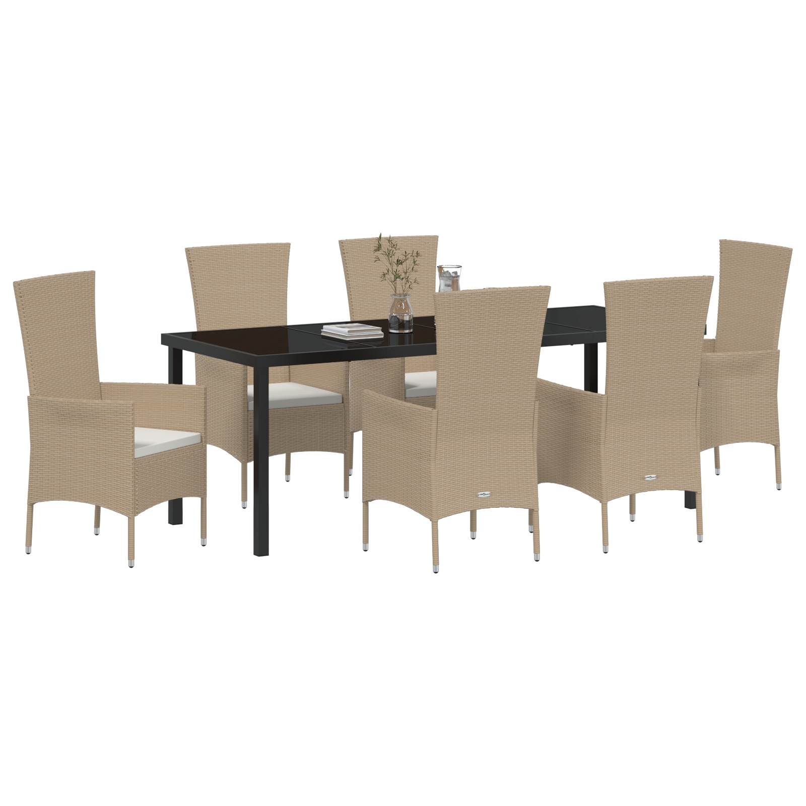 Set de mese pentru grădină cu perne Bej din ratan poli