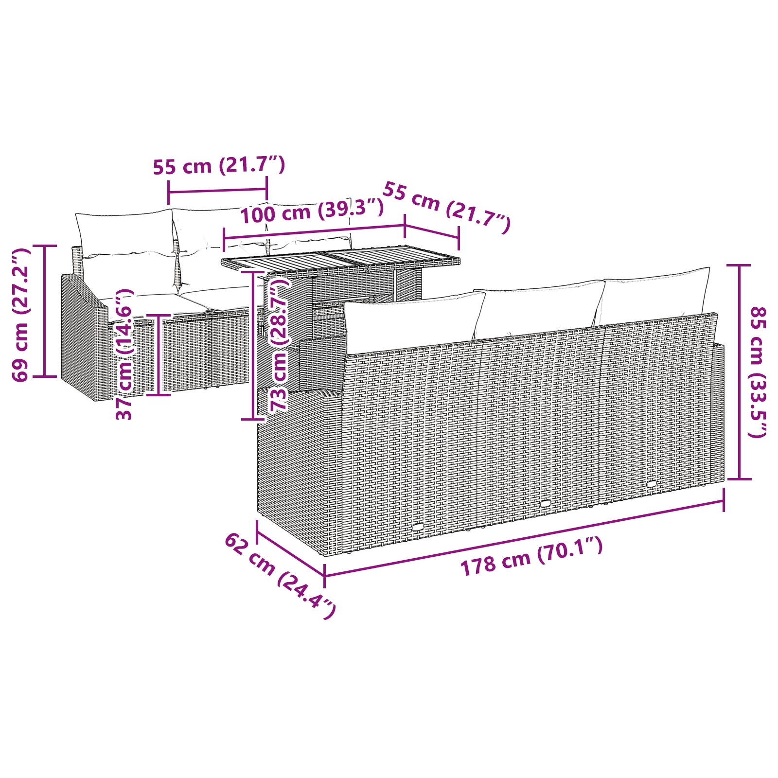 Set de canapele pentru grădină cu pernă 7 pcs Gri și Brown
