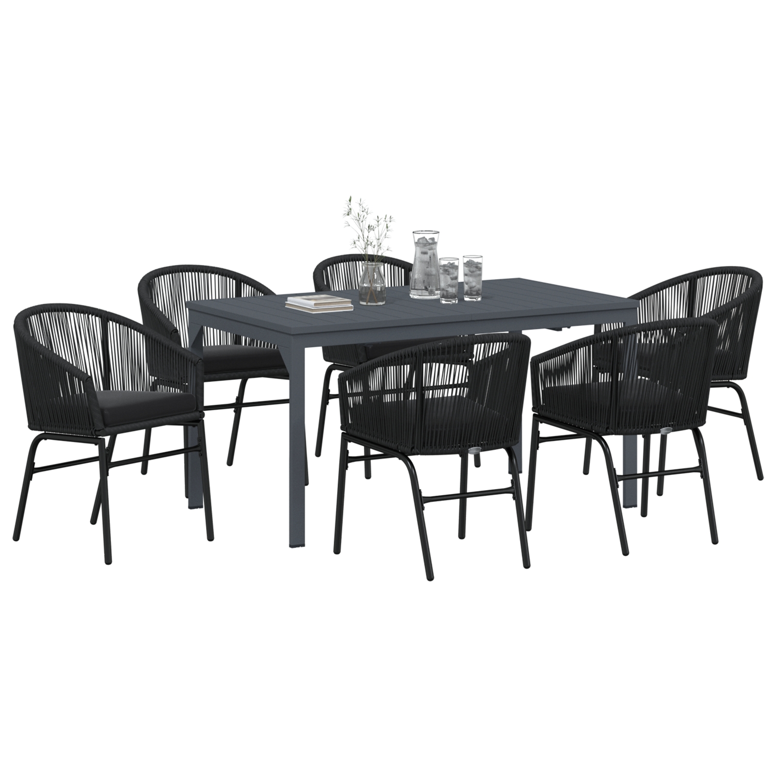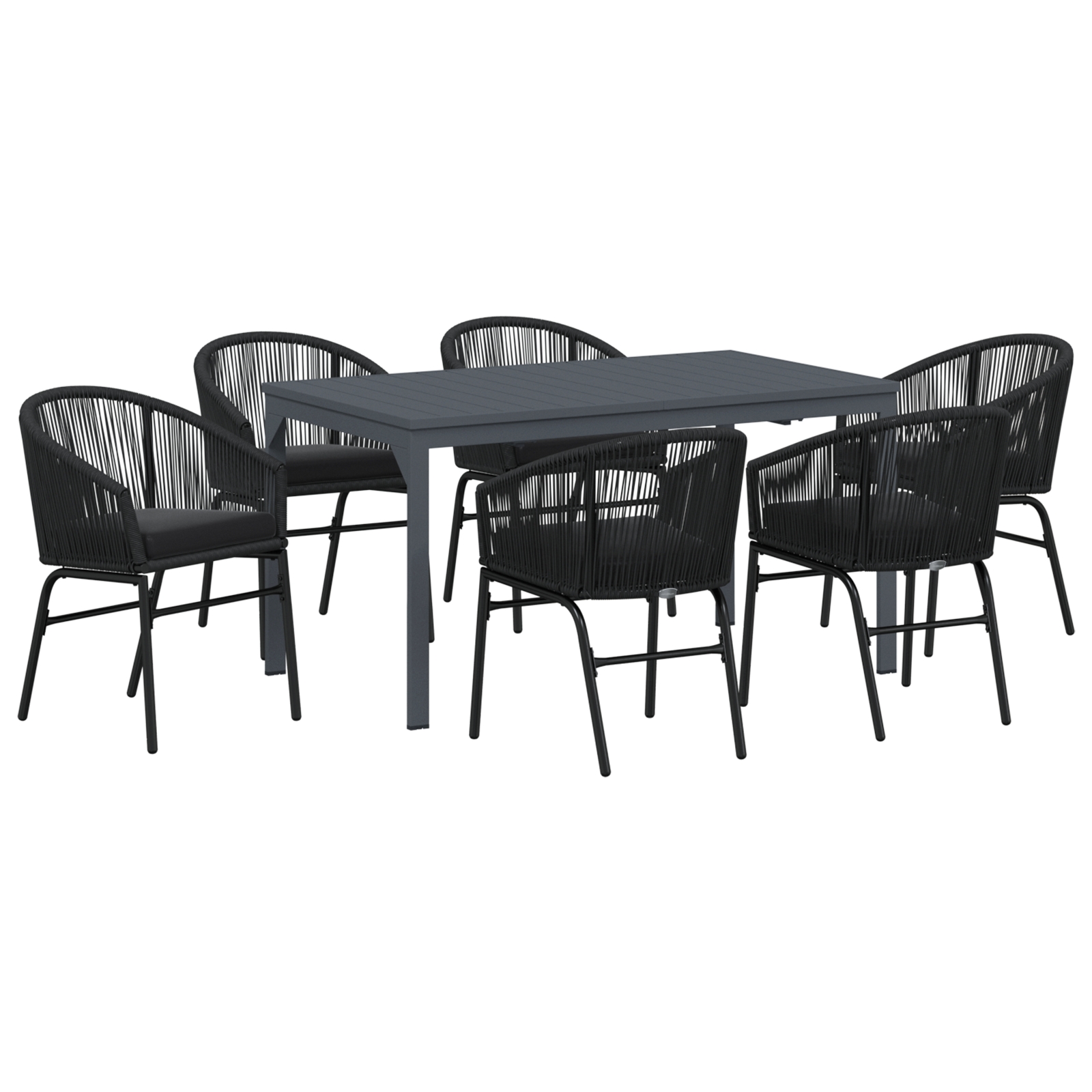Set de masă pentru grădină 7 pcs Negru Rattan poli