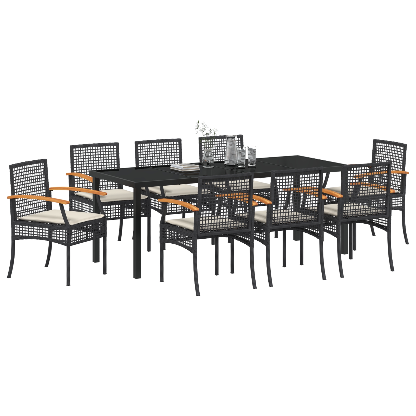 Set de mese pentru grădină cu perne – Ratan Polimeric Negru