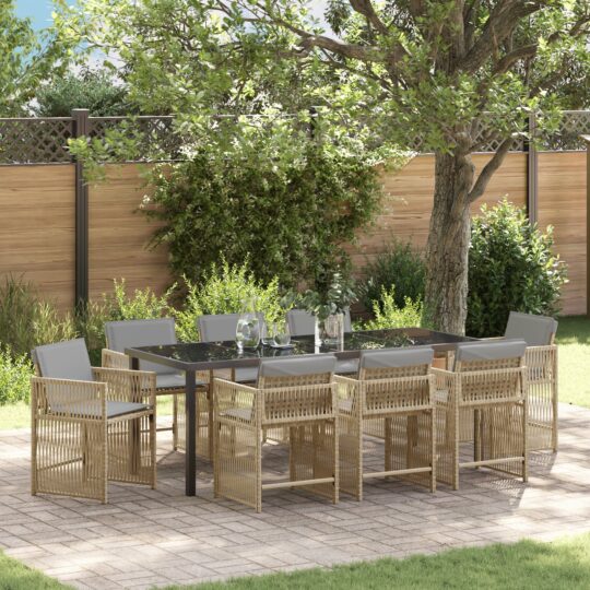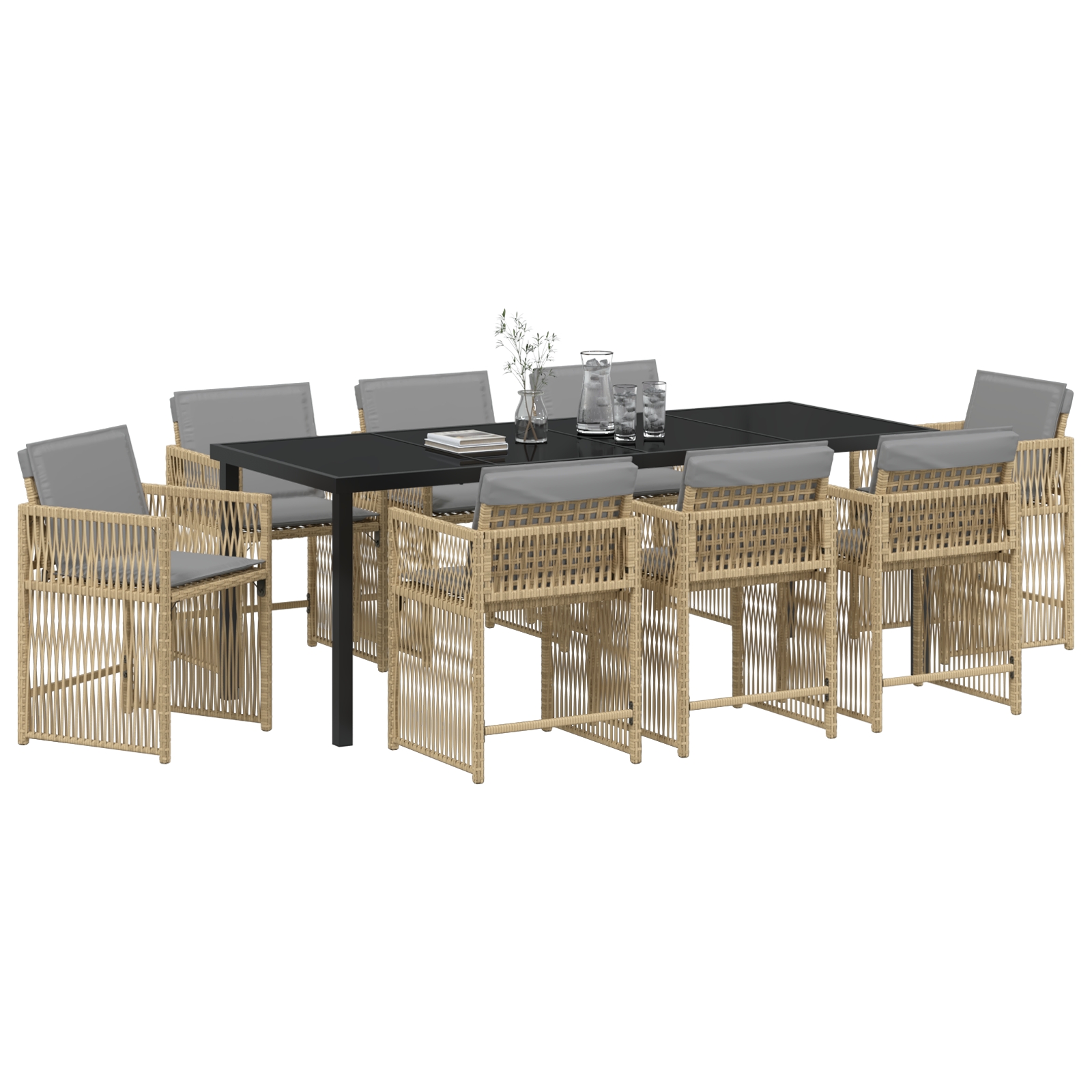 Set de Mese pentru Grădină de 9 Piese cu Pernuțe Bej din Poliratan