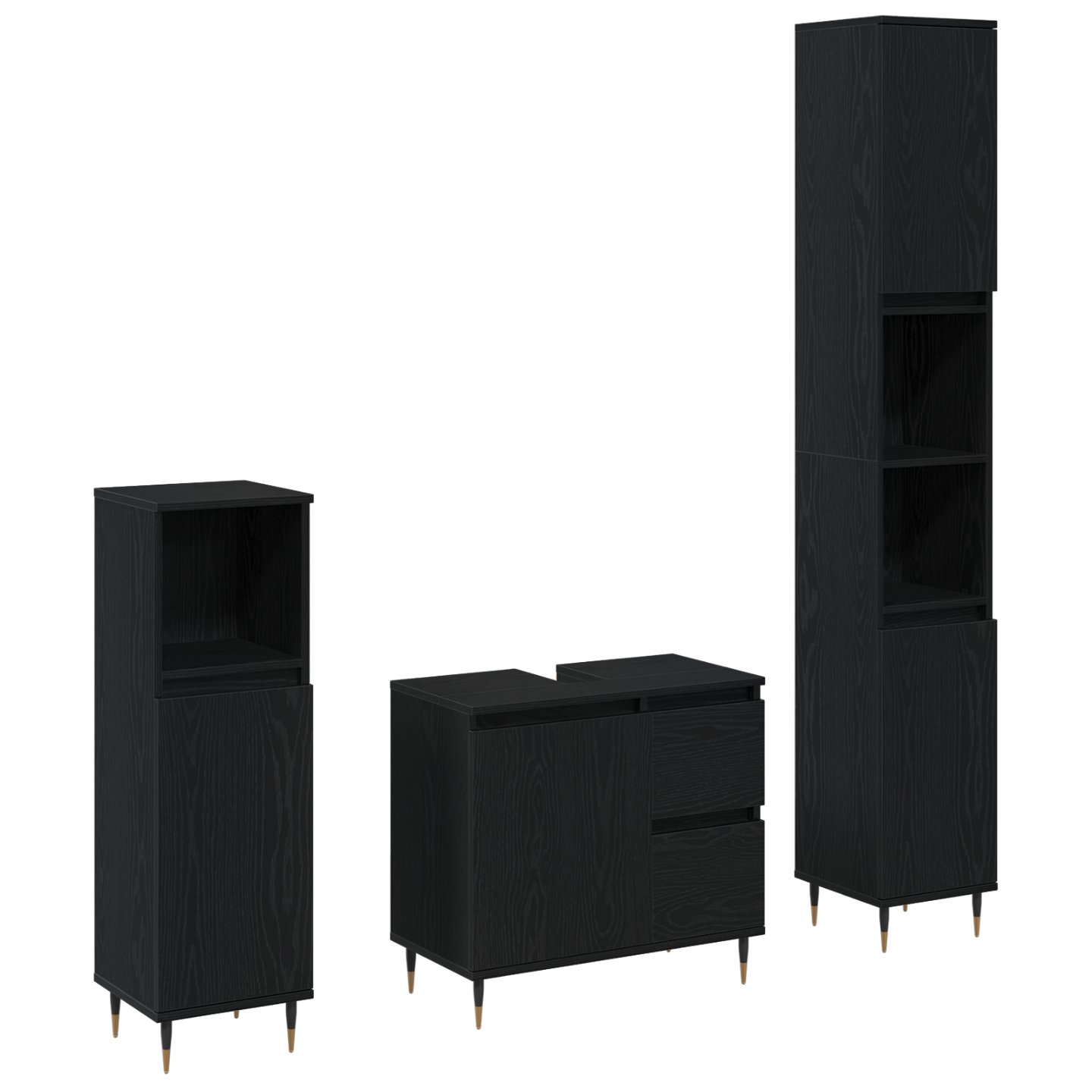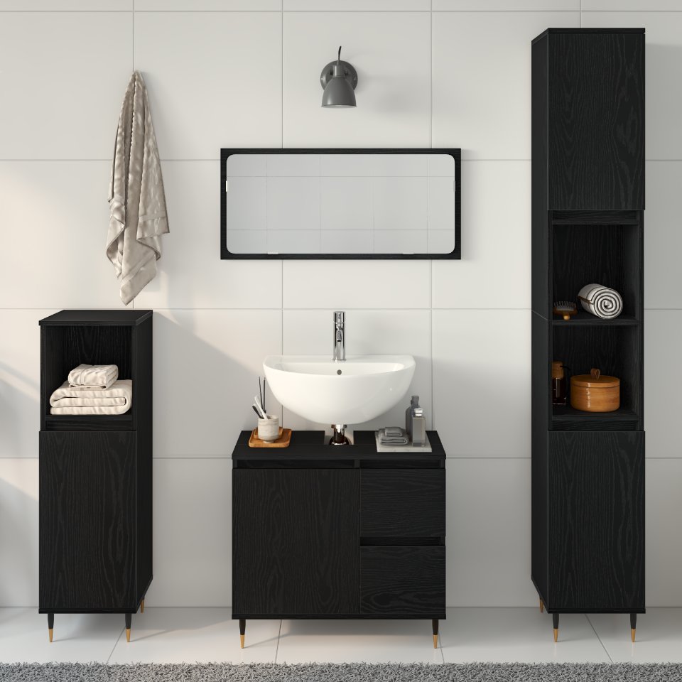 Set de mobilă pentru baie 3 pcs Stejar Negru 30 x 30 x 190 cm