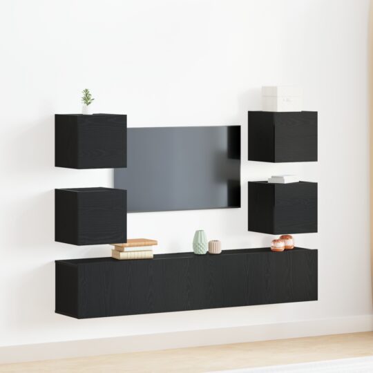 Cabinet TV 6 pcs Negru 160 x 30 x 30 cm Lemn compozit