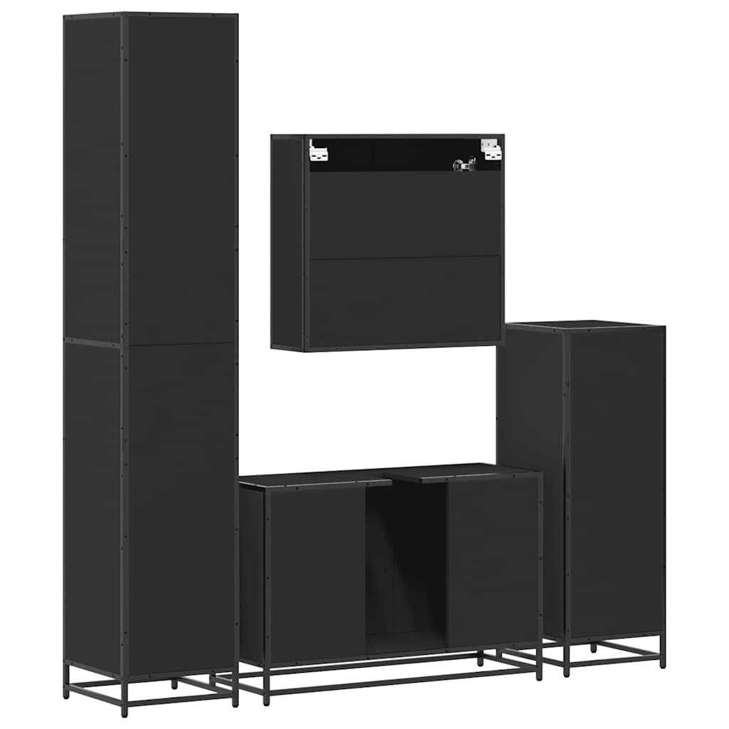 Set de mobilier de baie 4 piese Lemn negru prelucrat