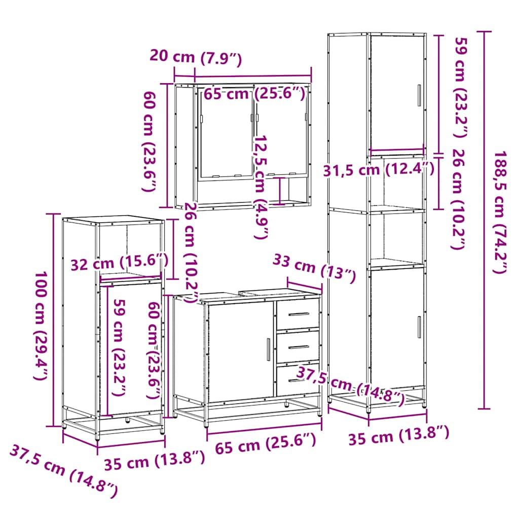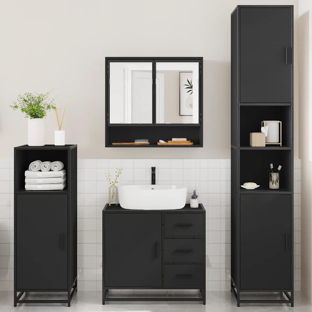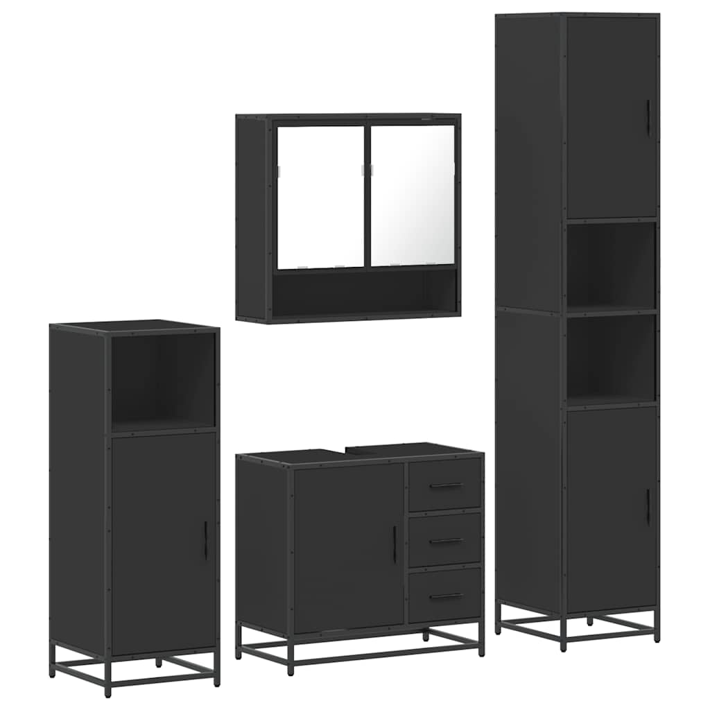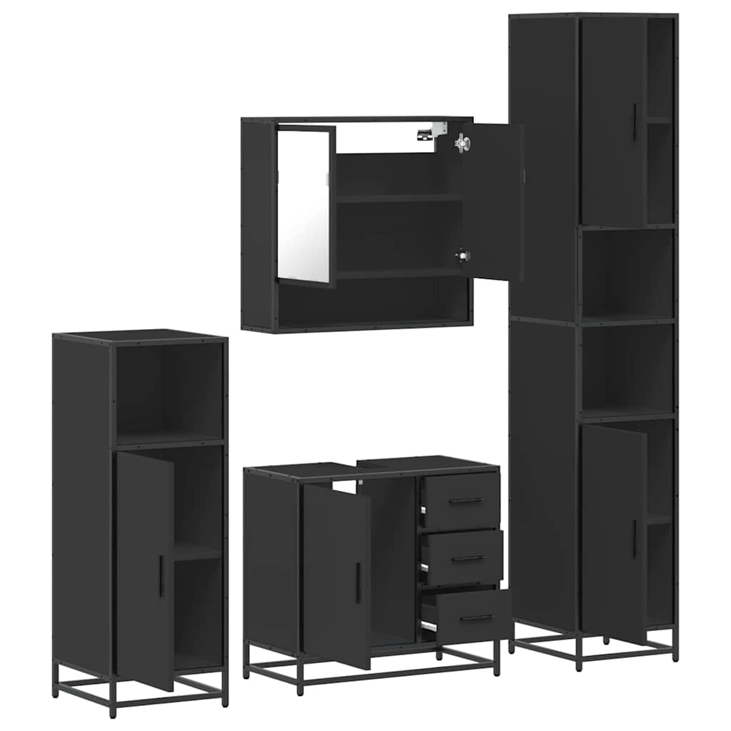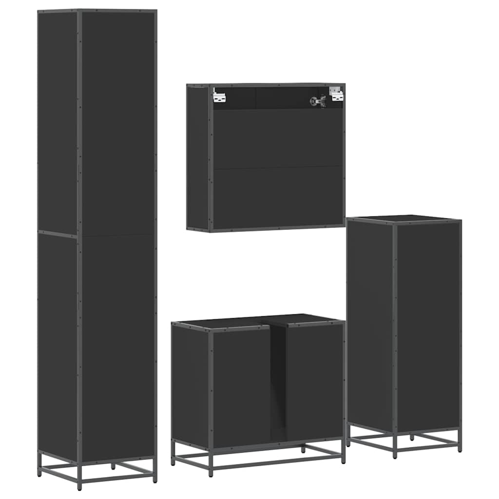 Set de mobilier de baie 4 piese Lemn negru prelucrat