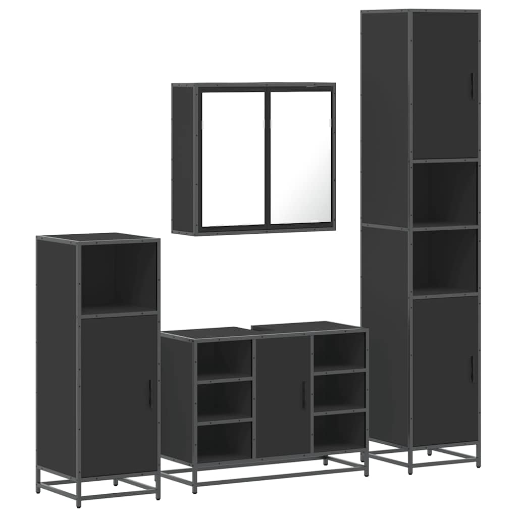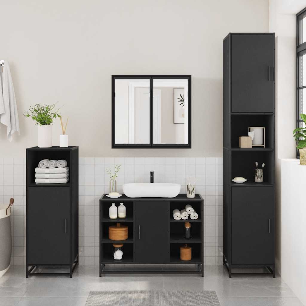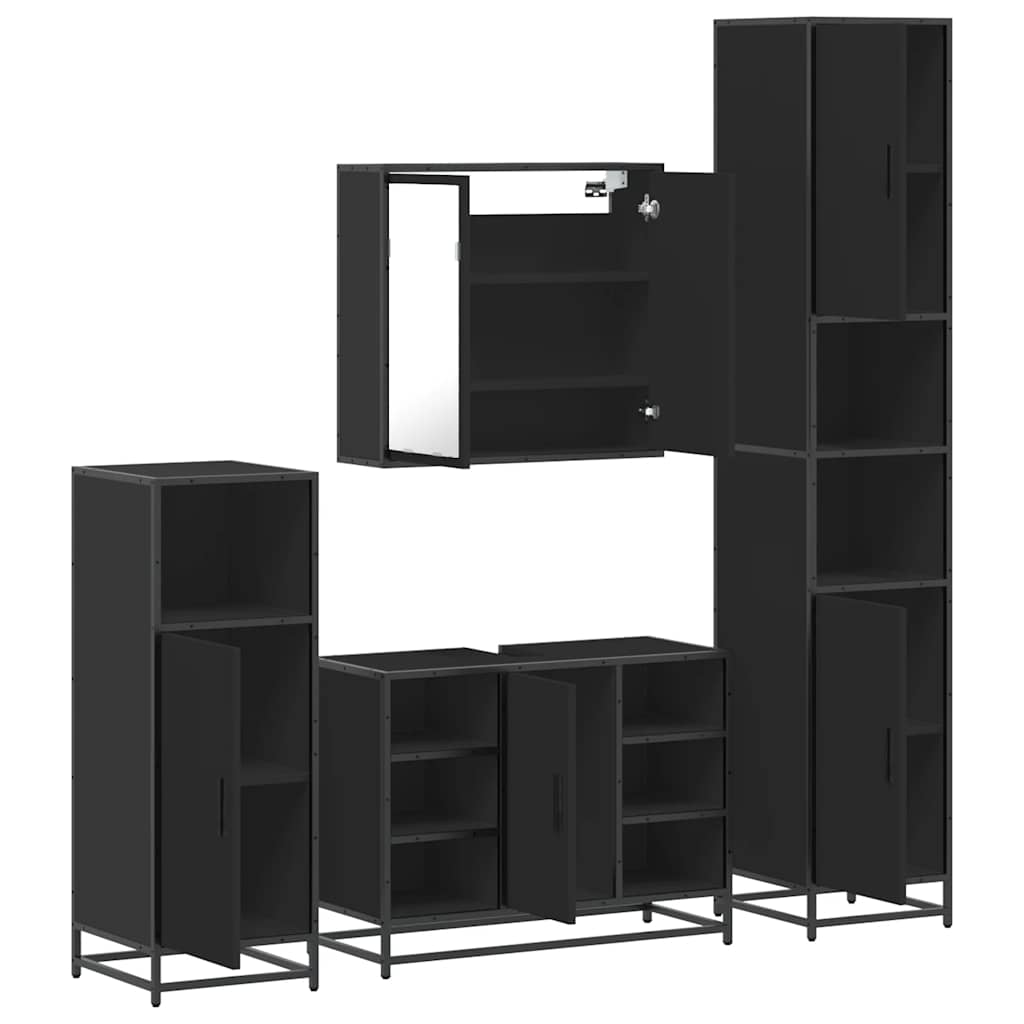 Set de mobilier de baie 4 piese Lemn negru prelucrat