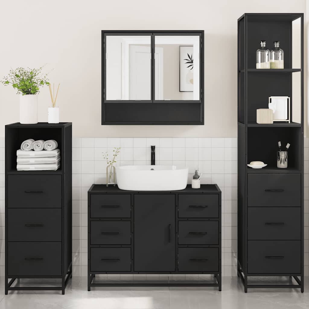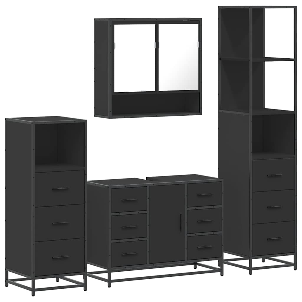 Set de mobilier de baie 4 piese Lemn negru prelucrat