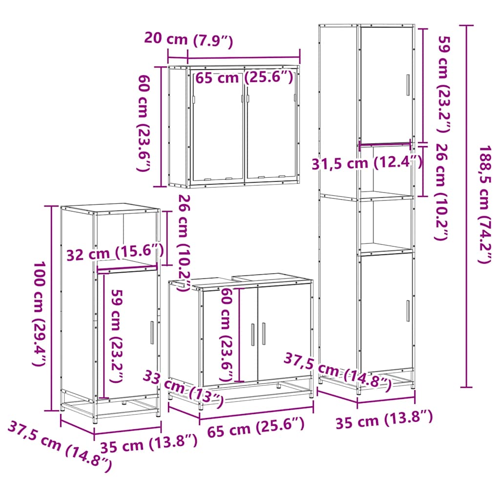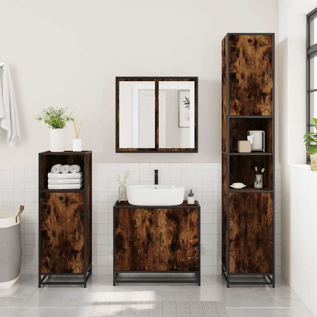 Set de mobilier de baie 4 piese Lemn prelucrat de stejar afumat