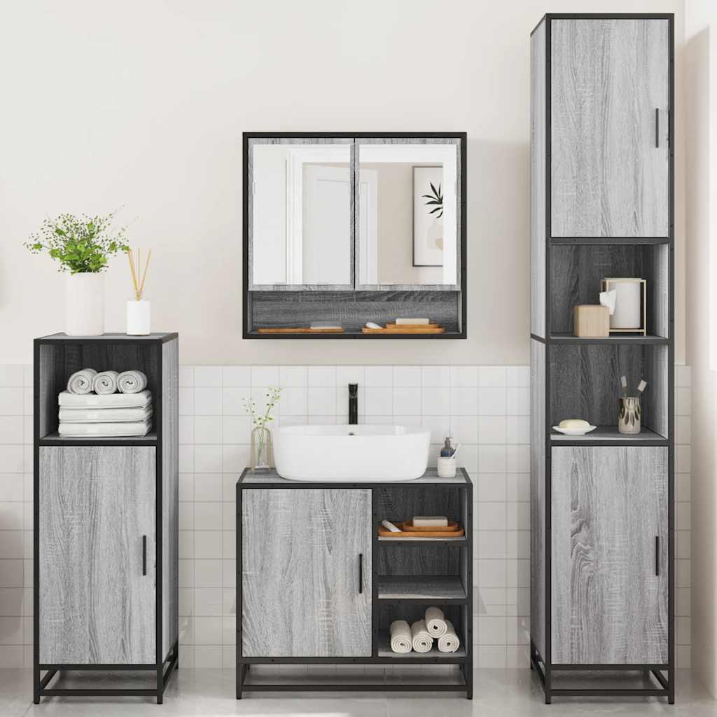 Set de mobilier de baie 4 piese Lemn stratificat gri Sonoma