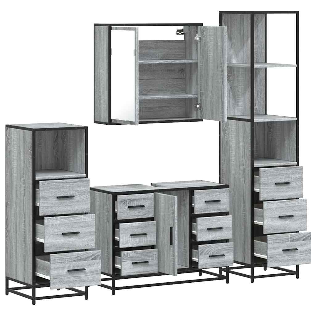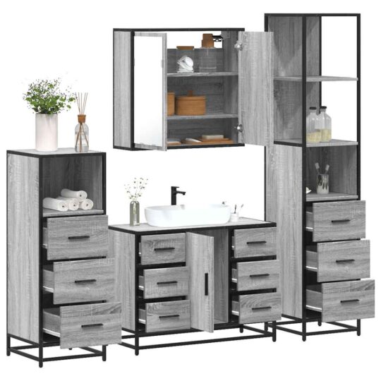 Set de mobilier de baie 4 piese Lemn stratificat gri Sonoma