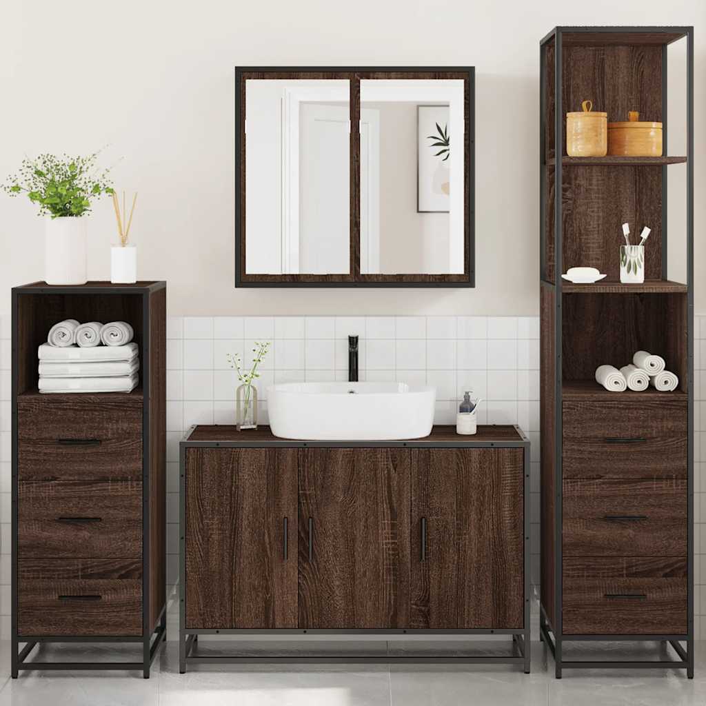 Set de mobilier de baie din 4 piese din lemn de stejar maro