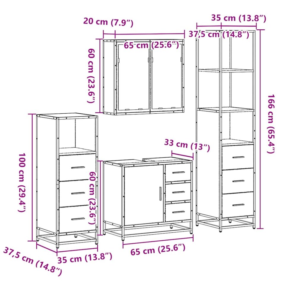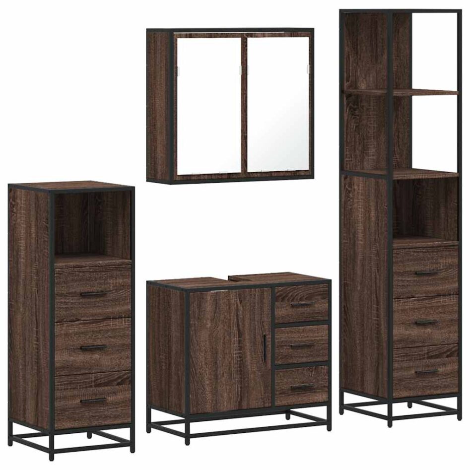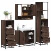 Set de mobilier de baie din 4 piese din lemn de stejar maro