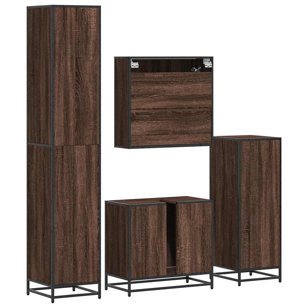 Set de mobilier de baie din 4 piese din lemn de stejar maro