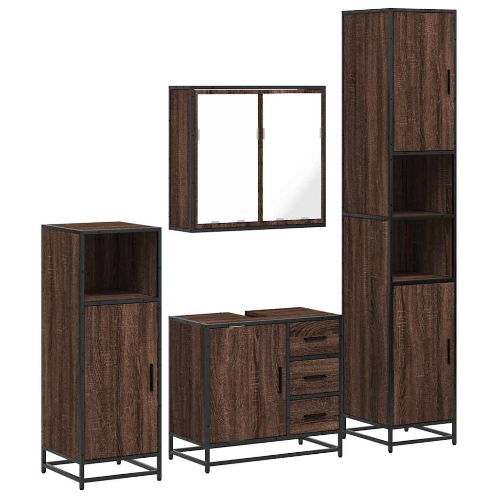 Set de mobilier de baie din 4 piese din lemn de stejar maro