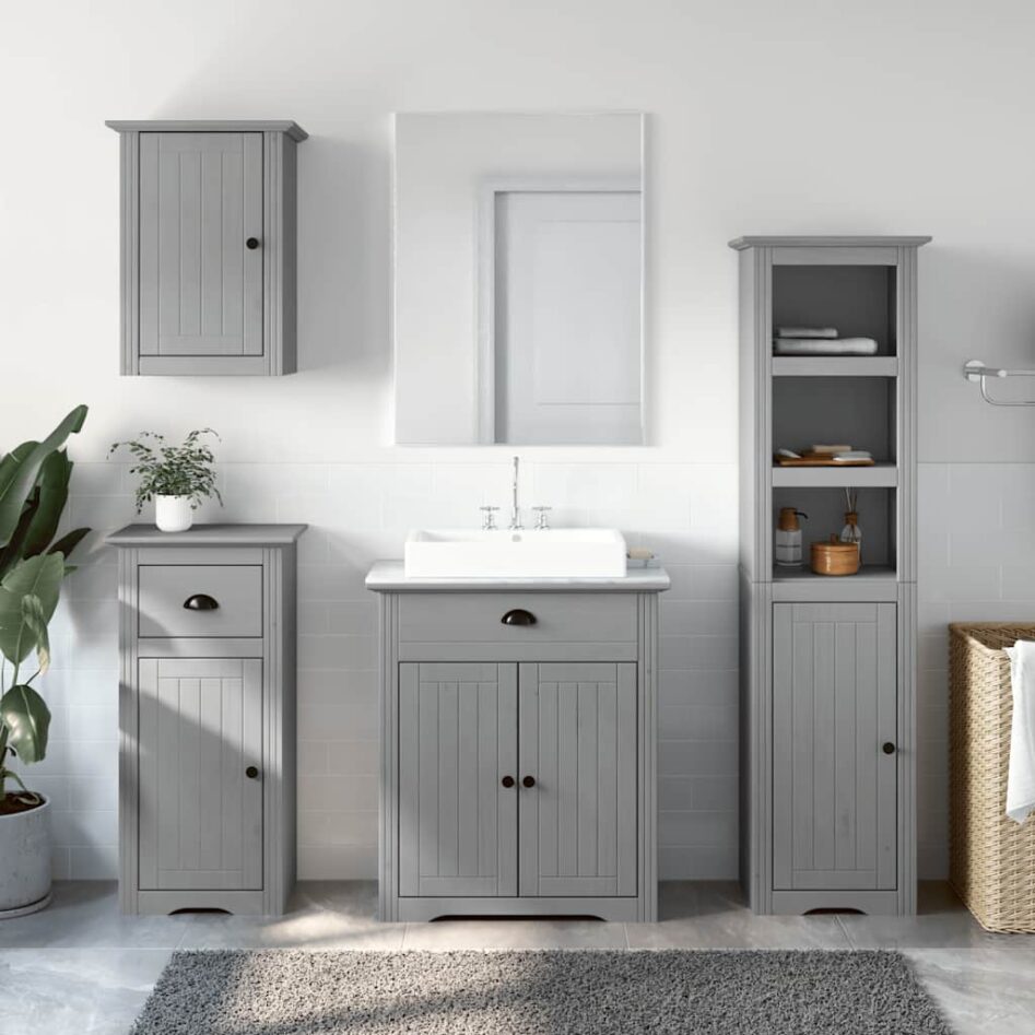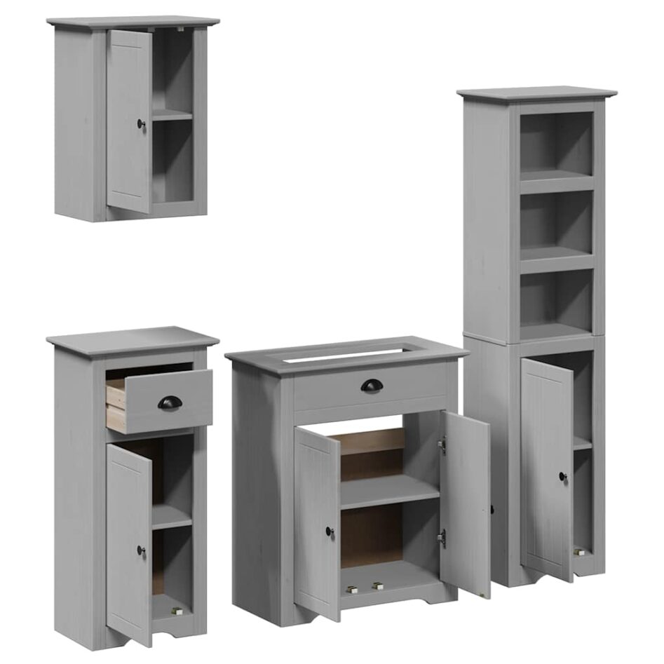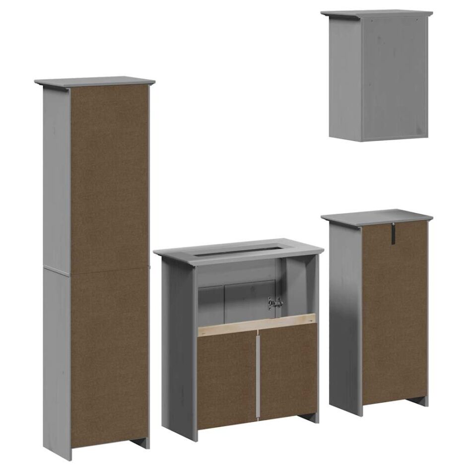 Set de mobilier de baie din 4 piese lemn masiv de pin gri