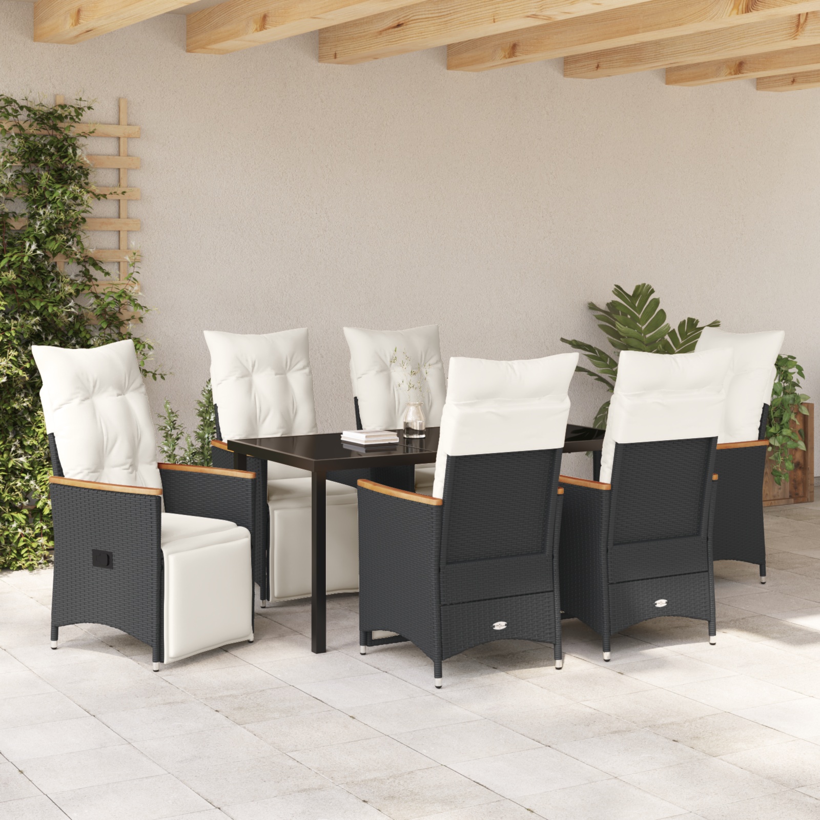 Set de masă pentru grădină cu pernă 7 pcs Negru Rattan poli