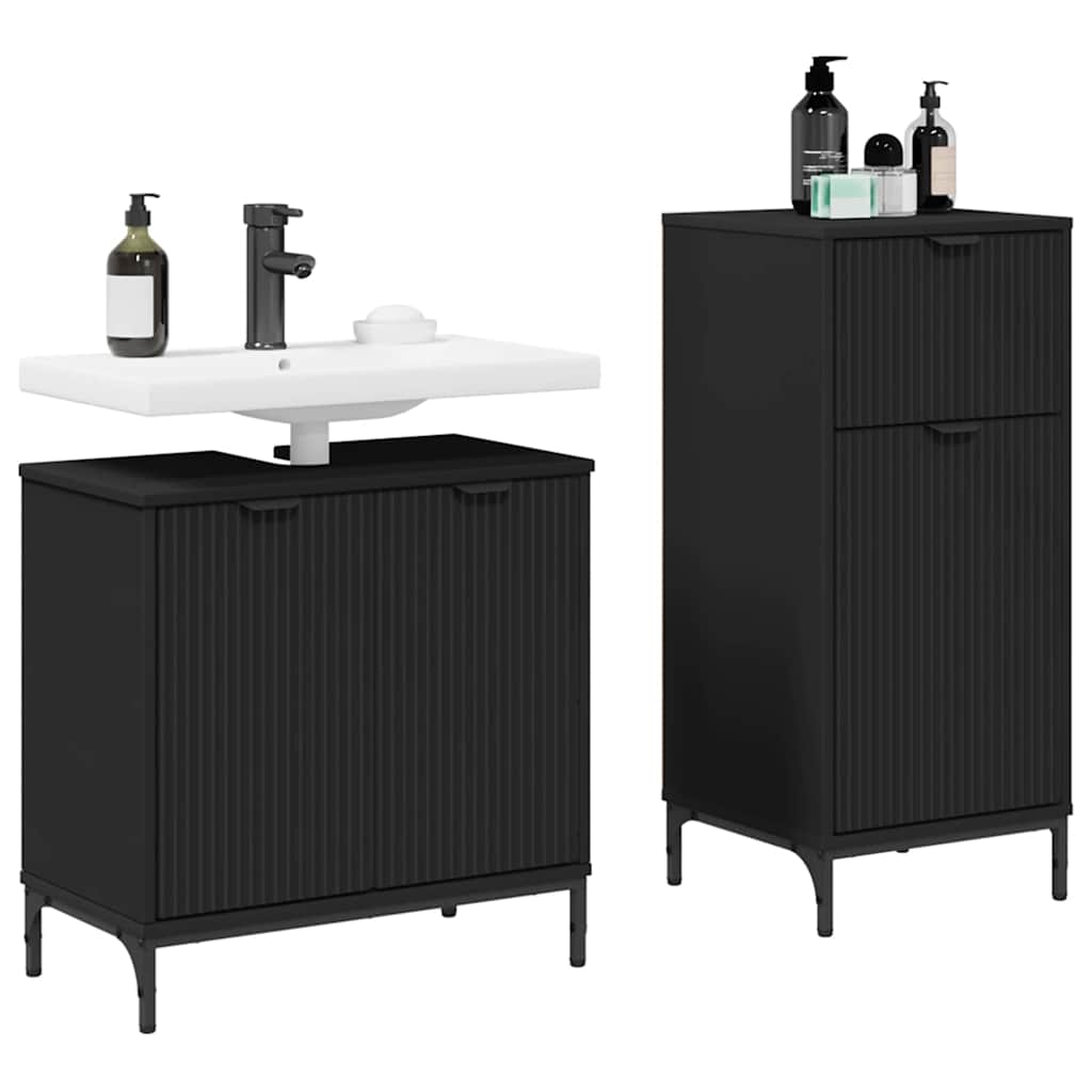 Set de mobilier pentru baie 2 pcs Negru 39.5 x 36 x 88 cm