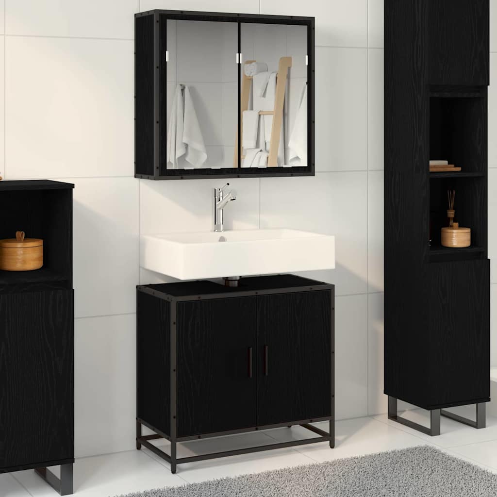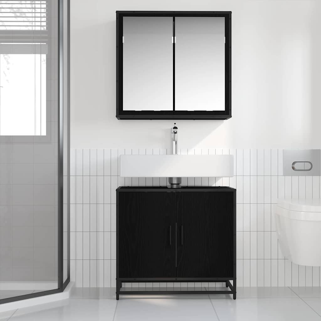 Set de mobilier pentru baie 2 pcs Stejar negru 65 x 33 x 60 cm