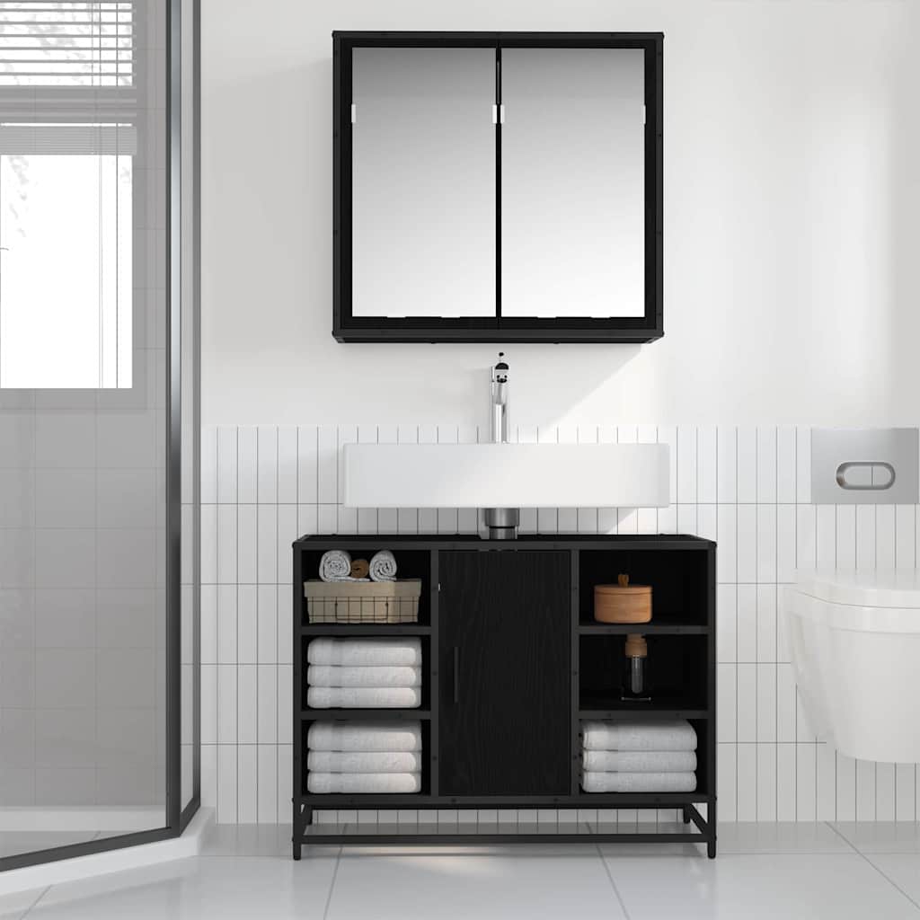 Set de mobilier pentru baie 2 pcs Stejar negru 80 x 33 x 60 cm