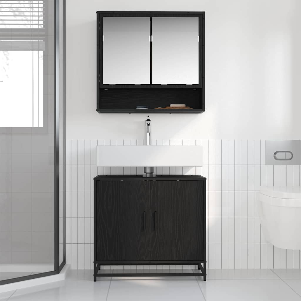 Set de mobilier pentru baie 2 pcs Stejar Negru Lemn compozit