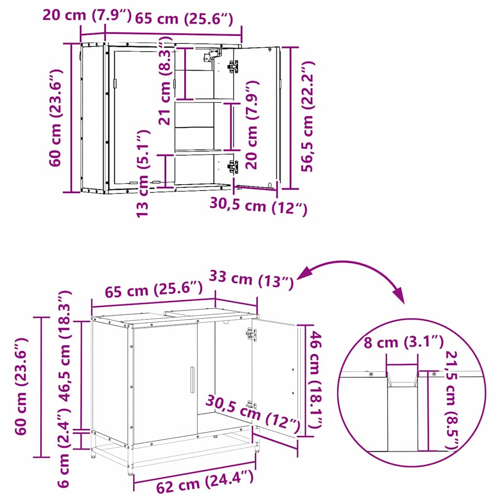 Fii primul care scrii o recenzie pentru „Set de mobilier pentru baie 3 pcs Lemn vechi 65 x 33 x 60 cm”