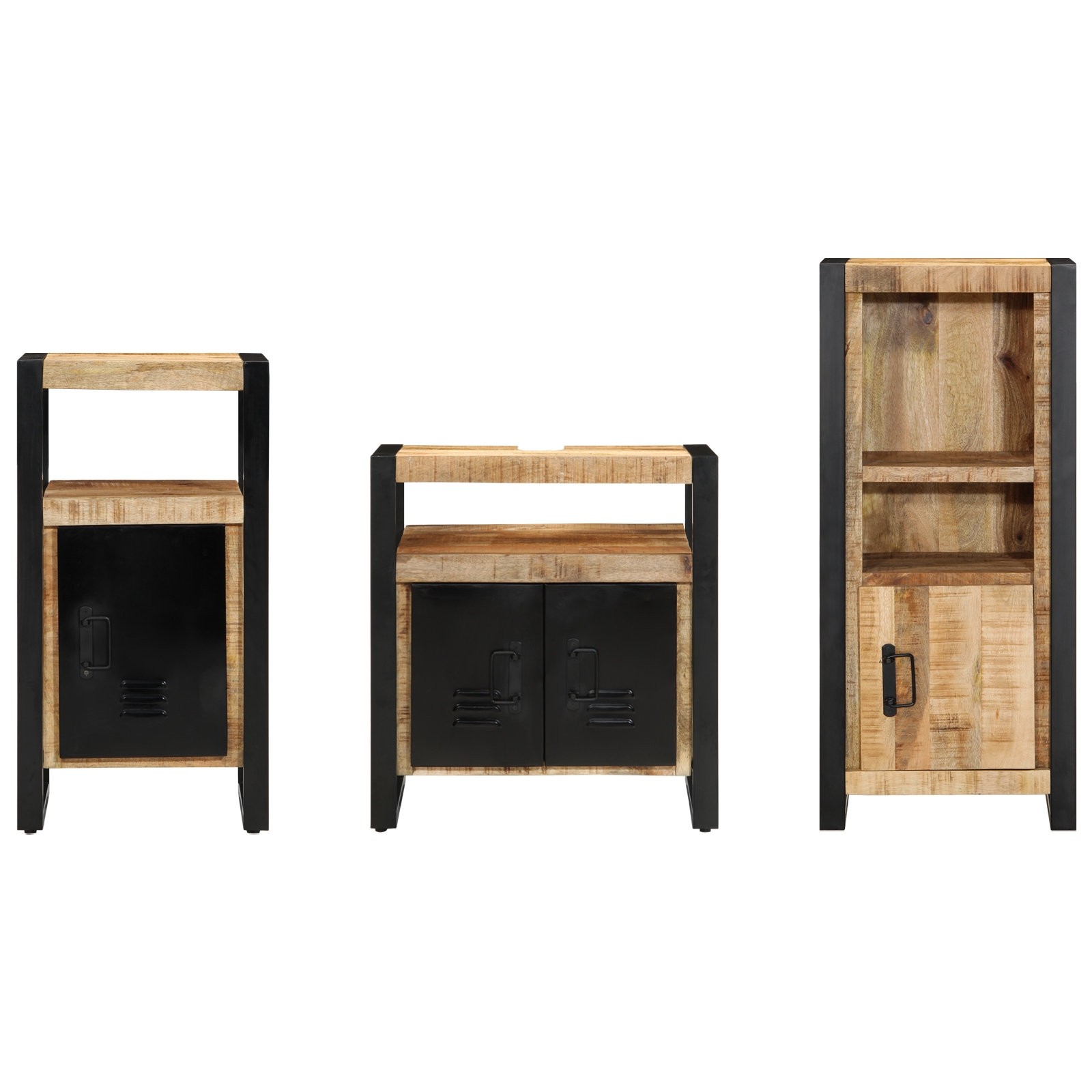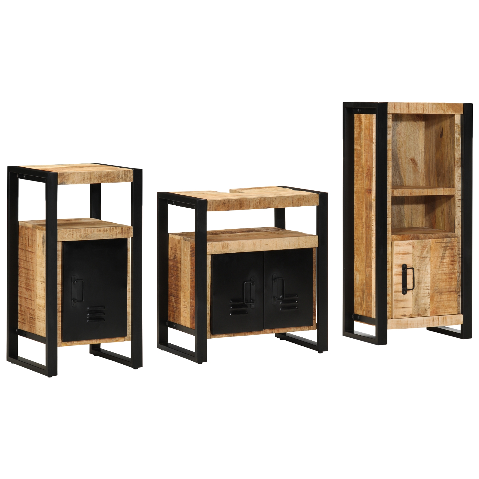 • Design Industrial: Setul ăsta are un look industrial fain cu suprafețe texturate și o construcție solidă. Inspirat de lofturi, se potrivește perfect în locuri moderne. Vibe-ul ăla brut, minimalist dă adâncime spațiului tău, fiind totodată elegant. Ușile din lemn masiv și picioarele robuste din fier completează totul.