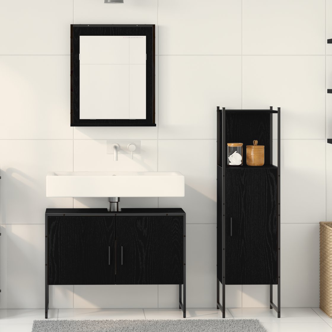Set de mobilier pentru baie 3 pcs Negru 33 x 33 x 102.5 cm