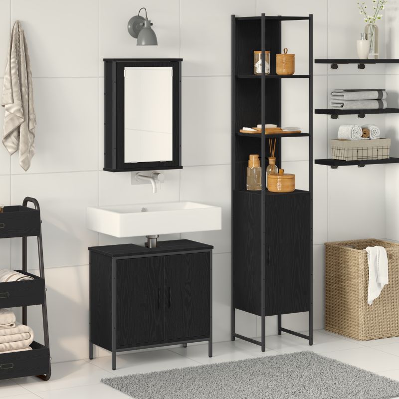 Set de mobilier pentru baie 3 pcs Negru 33 x 33 x 185.5 cm