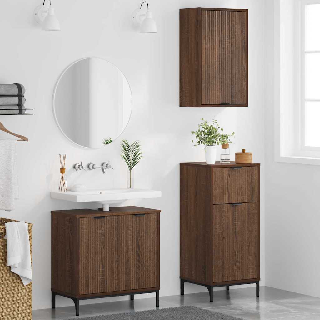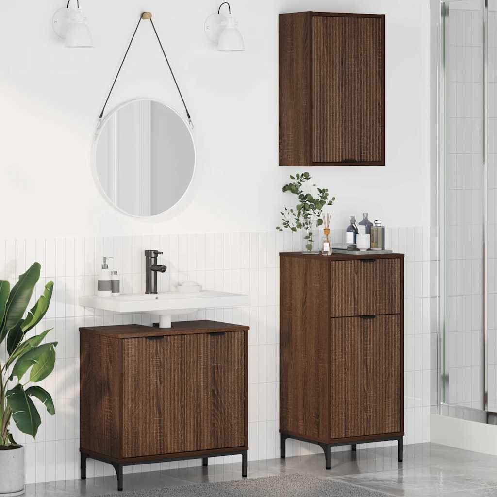 Set de mobilier pentru baie 3 pcs Stejar brun 39.5 x 36 x 88 cm