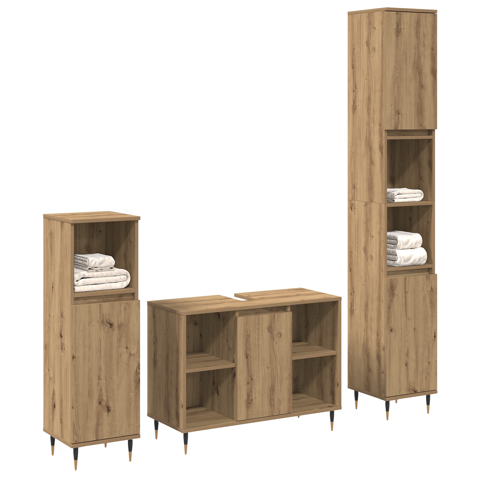 Set de Mobilier pentru Baie cu raft 3 pcs Stejar Artizanal
