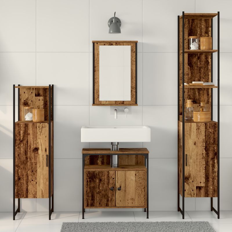 Set de mobilier pentru baie 4 pcs Lemn vechi 33 x 33 x 185.5 cm