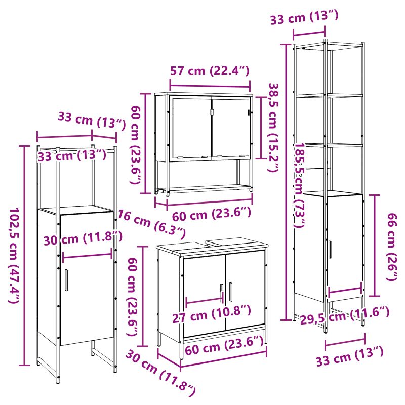 Set de mobilier pentru baie 4 pcs Maro 33 x 33 x 185.5 cm