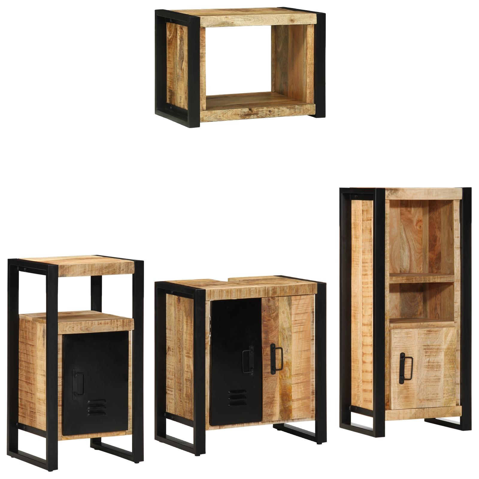 Set de mobilier pentru baie 4 pcs Maro Lemn de mango solid