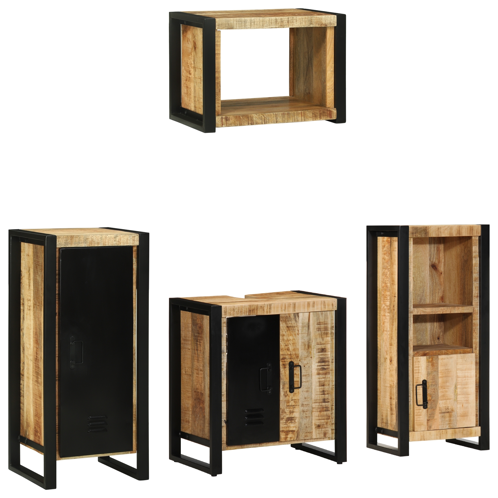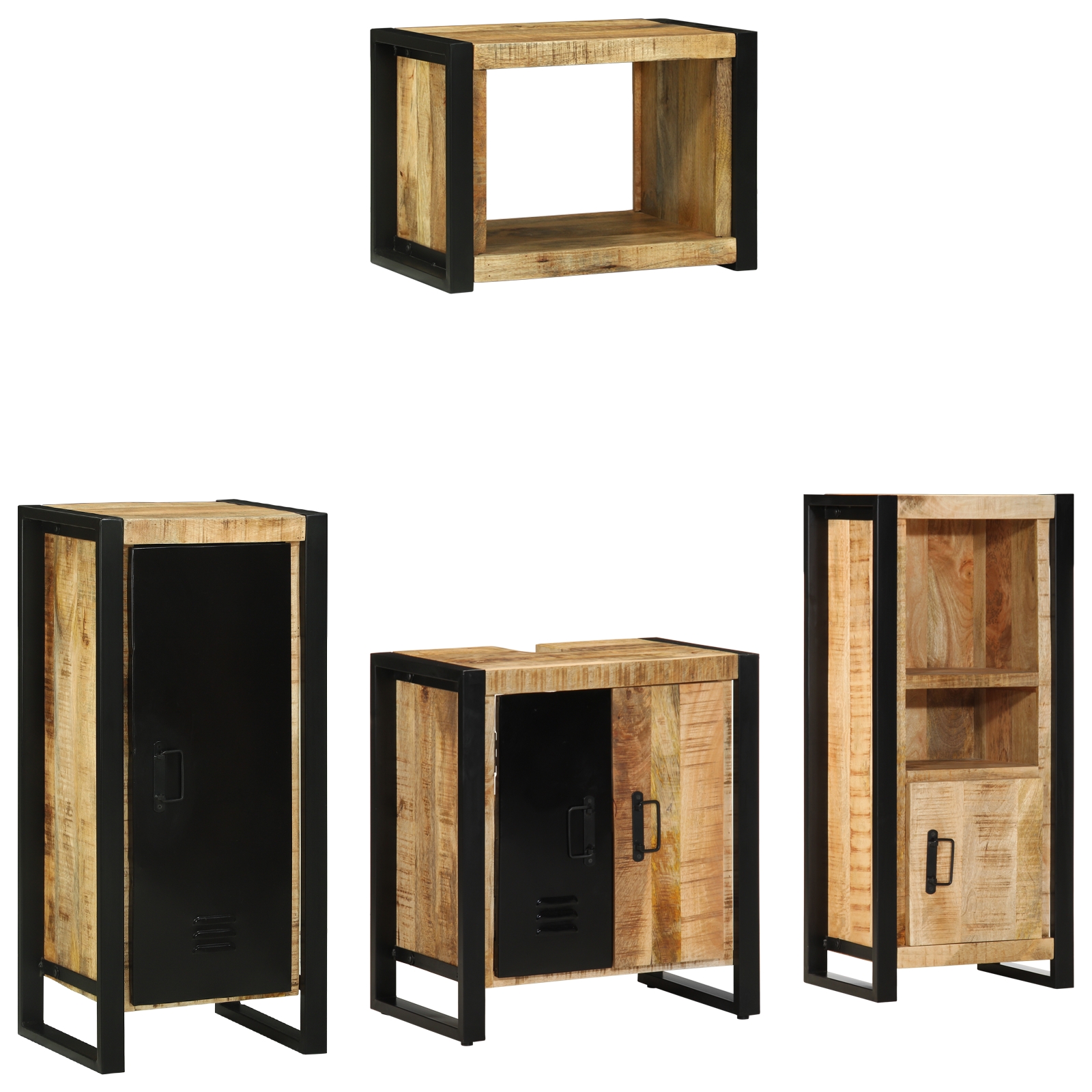 Set de mobilier pentru baie 4 pcs Maro Lemn de mango solid