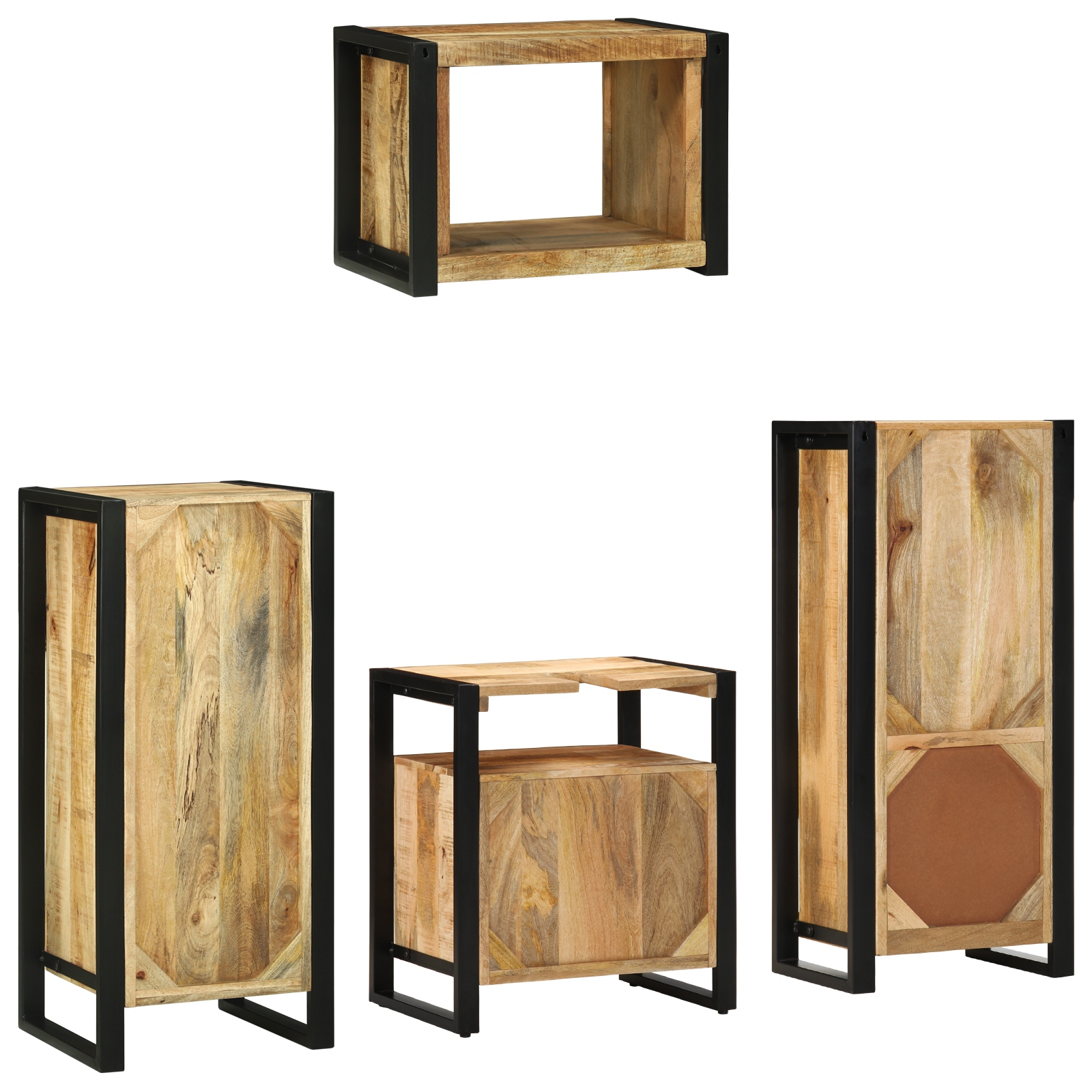 Set de mobilier pentru baie 4 pcs Maro Lemn de mango solid