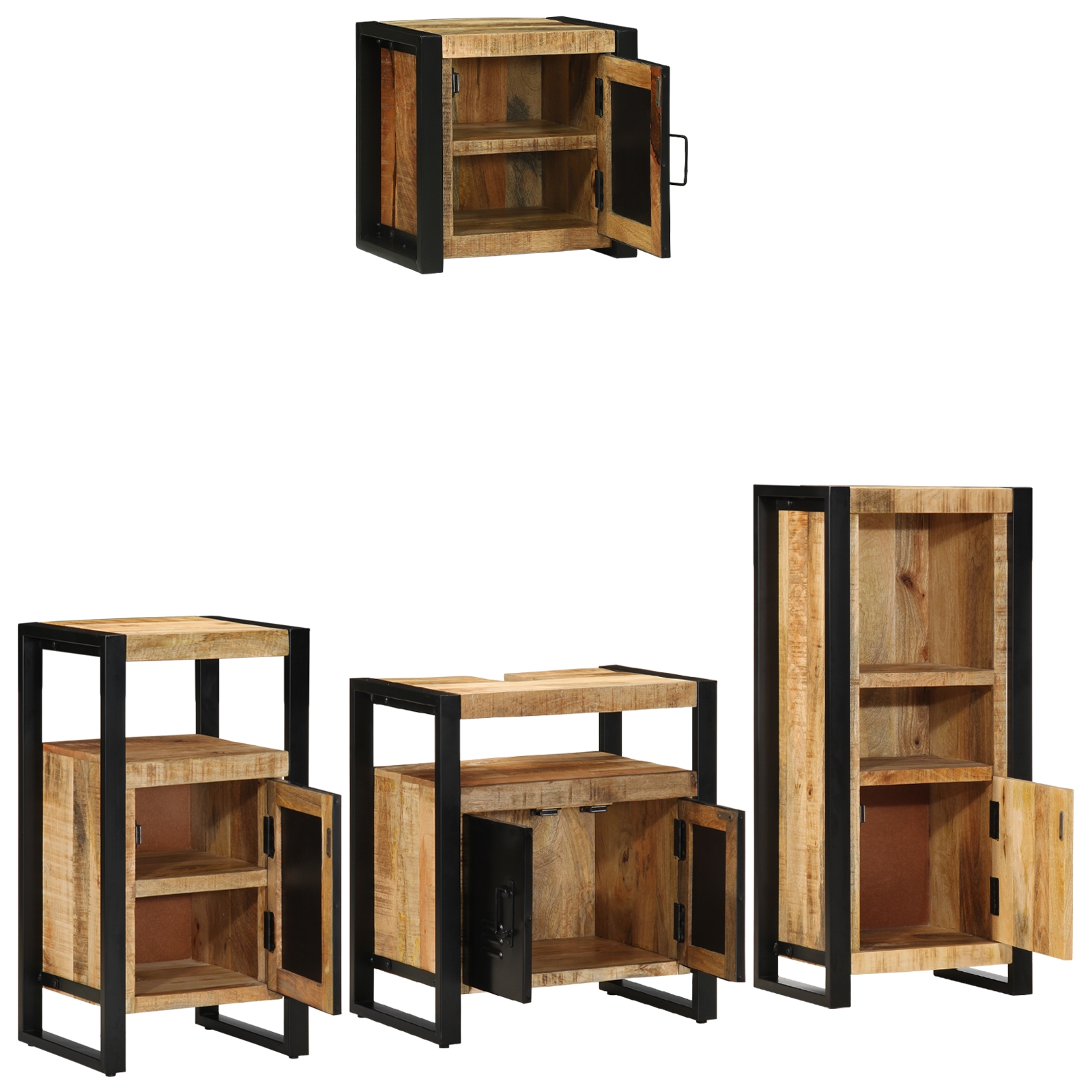 • Componente din fier texturat Picioarele din fier solide susțin dulapurile astea, asigurându-se că rezistă și fac față utilizării zilnice. Construcția robustă cu un finisaj texturat aduce un plus de stil urban în baie, îmbinând funcționalitatea cu eleganța.