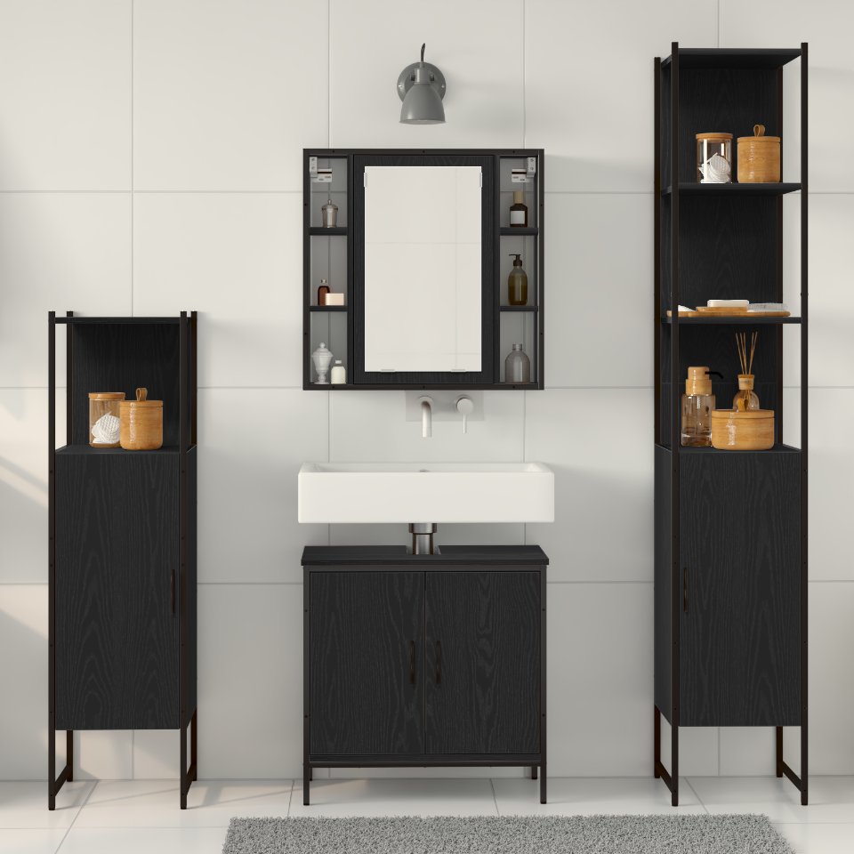 Set de mobilier pentru baie 4 pcs Negru 33 x 33 x 185.5 cm
