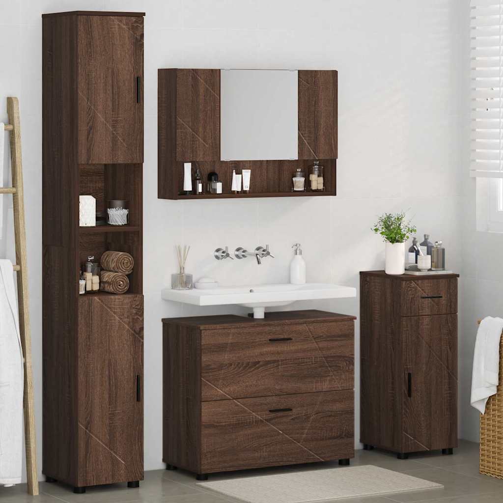 Set de mobilier pentru baie 4 pcs Stejar brun 30 x 35 x 192 cm