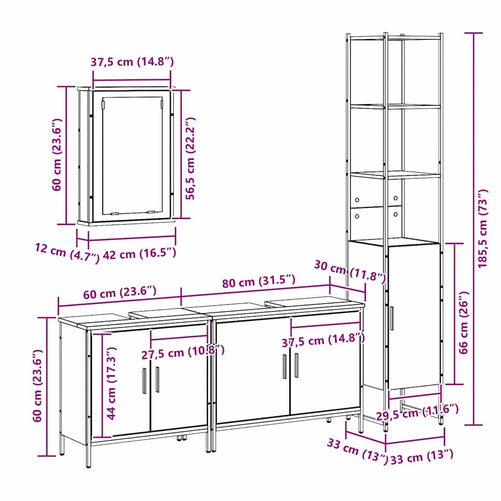 Set de mobilier pentru baie 4 pcs Negru 33 x 33 x 185.5 cm