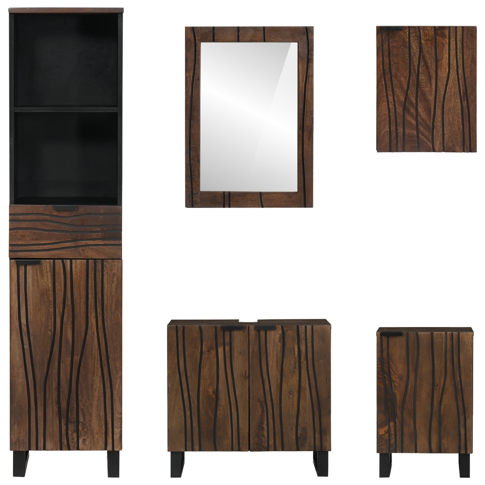 - 1 x Cabinet pentru chiuvetă, 1 x Cabinet pentru oglindă, 1 x Cabinet de baie (L), 1 x Cabinet de baie (S), 1 x Cabinet de baie montat pe perete