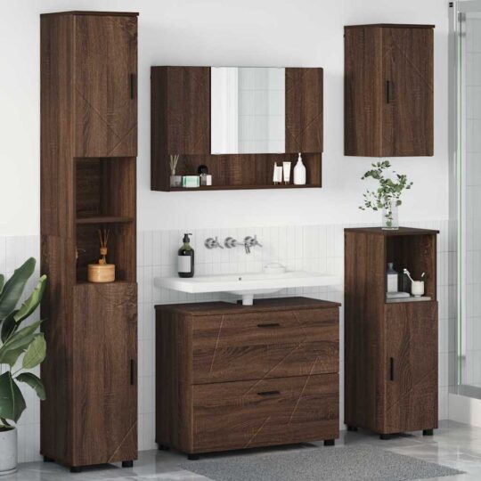 Set de mobilier pentru baie 5 pcs Stejar brun 30 x 35 x 192 cm