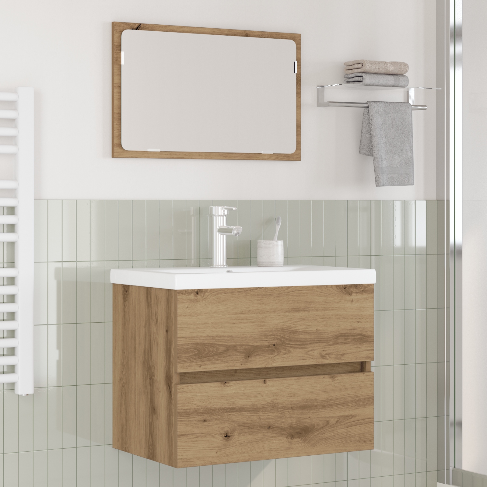 - 1 x Dulap cu Chiuvetă, 1 x Chiuvetă Încorporată, 1 x Oglindă