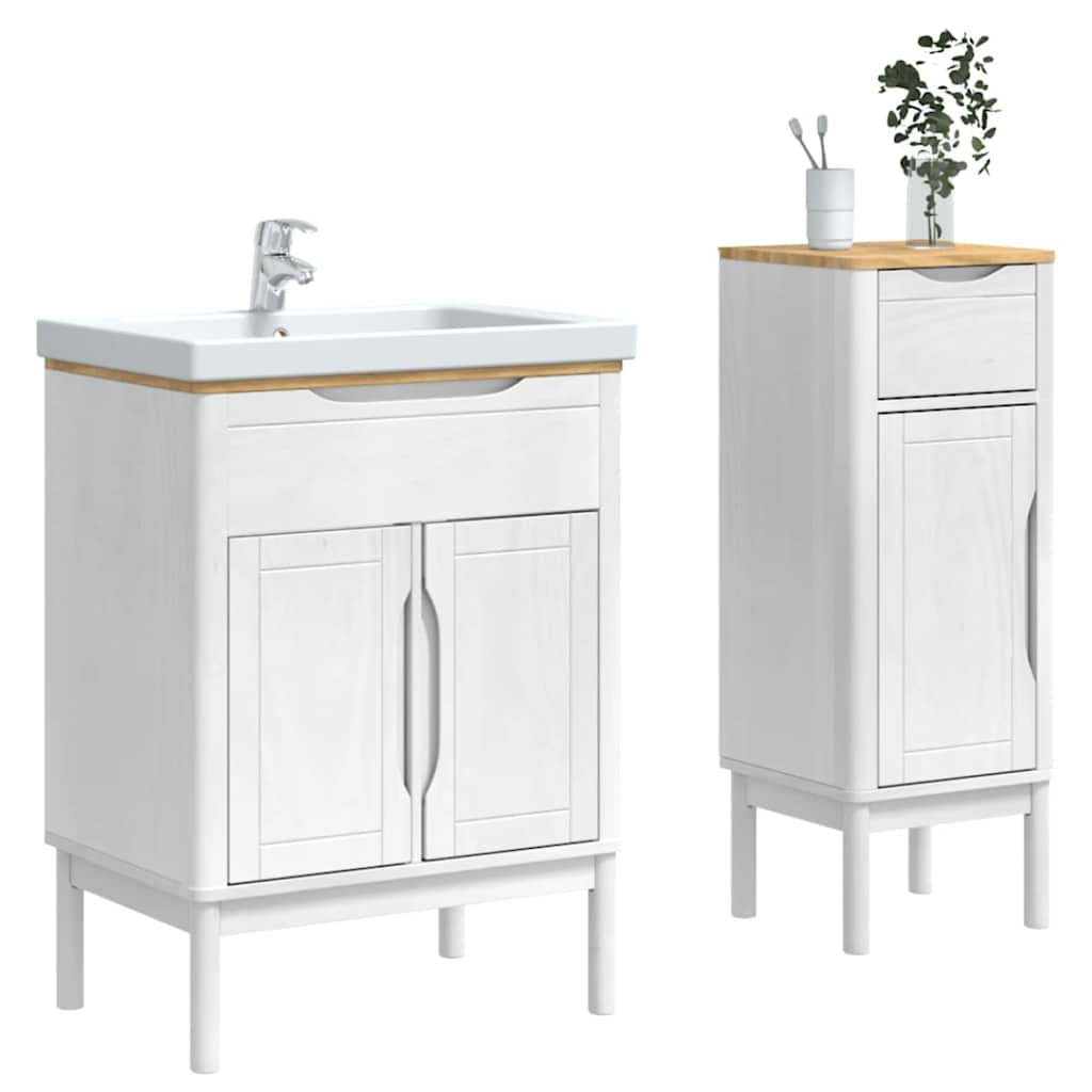Set de mobilier pentru baie cu raft 2 pcs Alb Lemn de pin masiv
