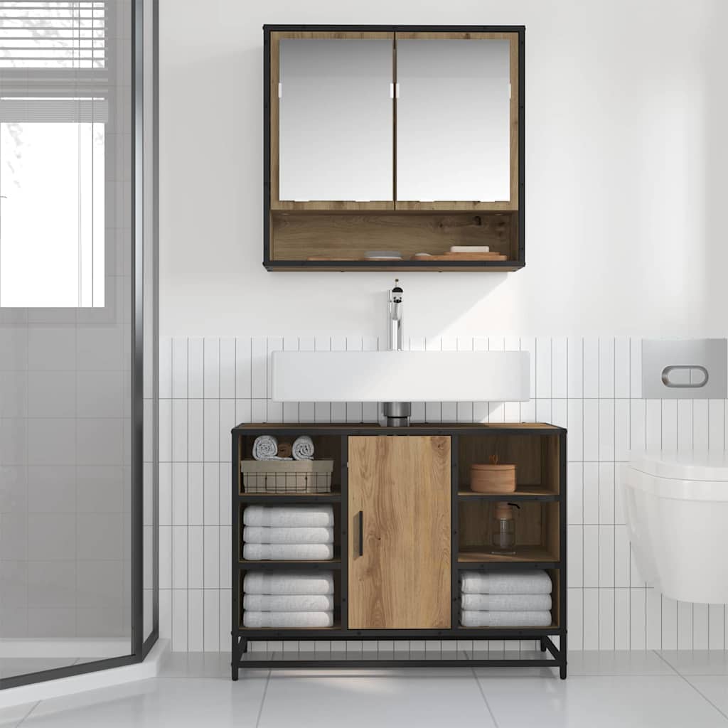 Set de mobilier pentru baie cu raft 2 pcs Stejar Artizanal