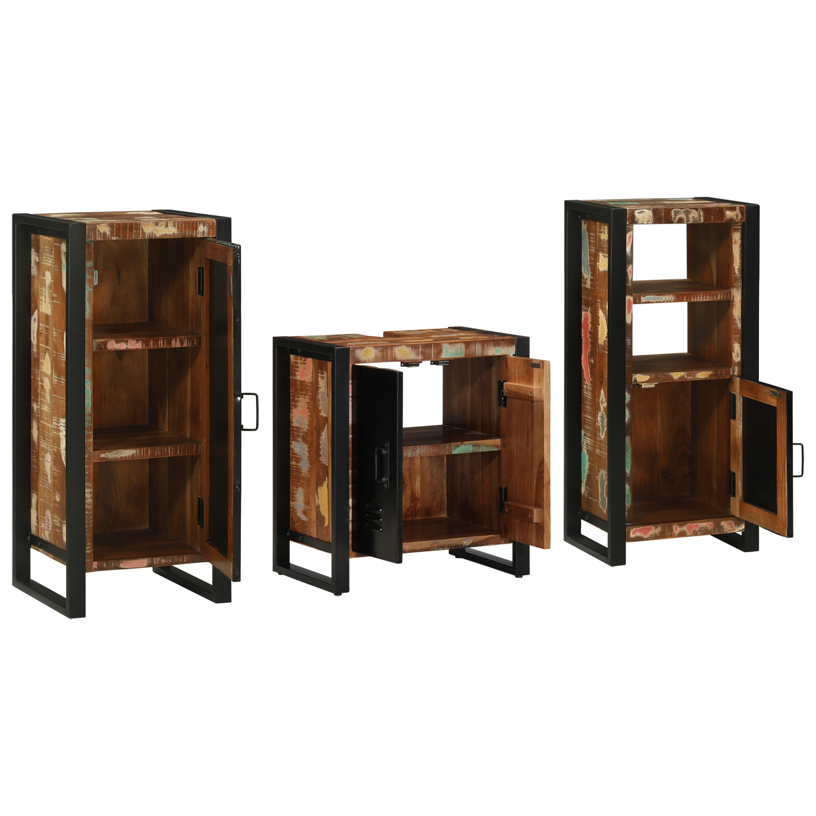 Set de mobilier pentru baie cu raft 3 pcs Lemn recuperat solid