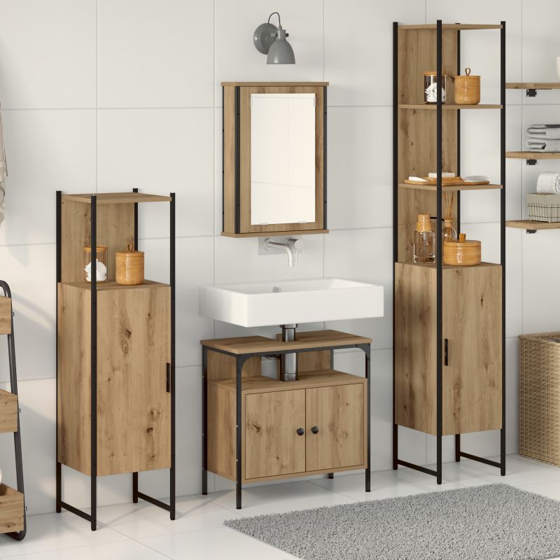 Set de mobilier pentru baie cu raft 4 pcs stejar artizanal